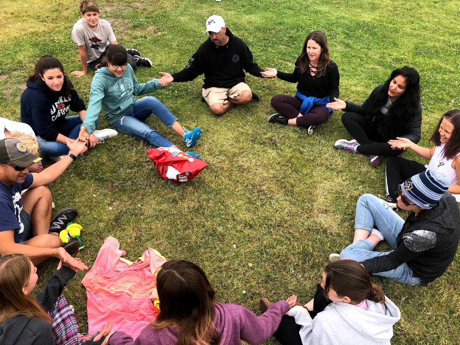 The weekend is full of games that everyone plays, kickball, volleyball, hot potato, slack line, guesstures, corn hole, badminton and whatever the games is pictured